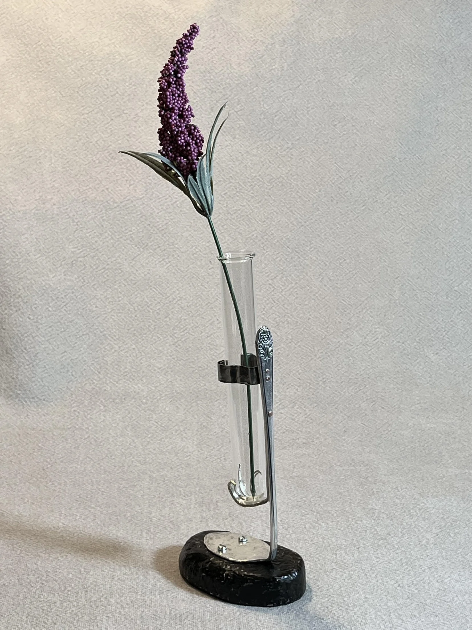 "Test Tube Propagation", display vase, stainless steel, 7.5" tall, 3.25" diameter base, $45 SOLD