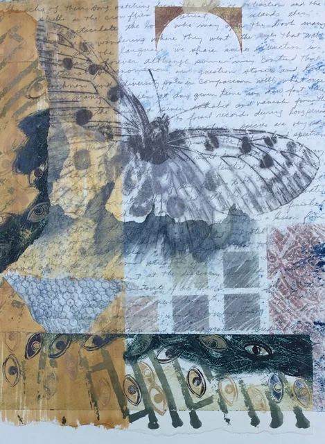 ”My artwork is a synthesis of observation, research and reflection. Working with highly tactile materials and minimal text, I make paintings, prints and artist’s books that bear witness to our contemporary culture. Bringing together disparate elements, my landscape paintings, monoprints and artist’s books draw on the lessons and lamentations of our tumultuous times.
