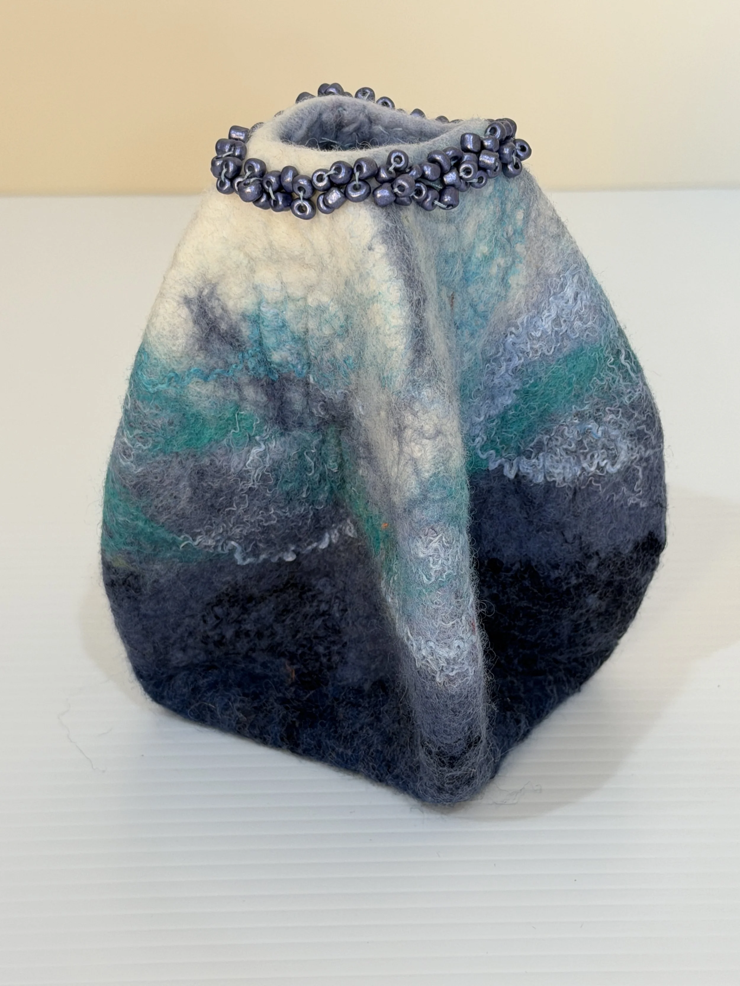 "Bird's Nest Vessel I", fiber, 10" x 8" x 8", $70
