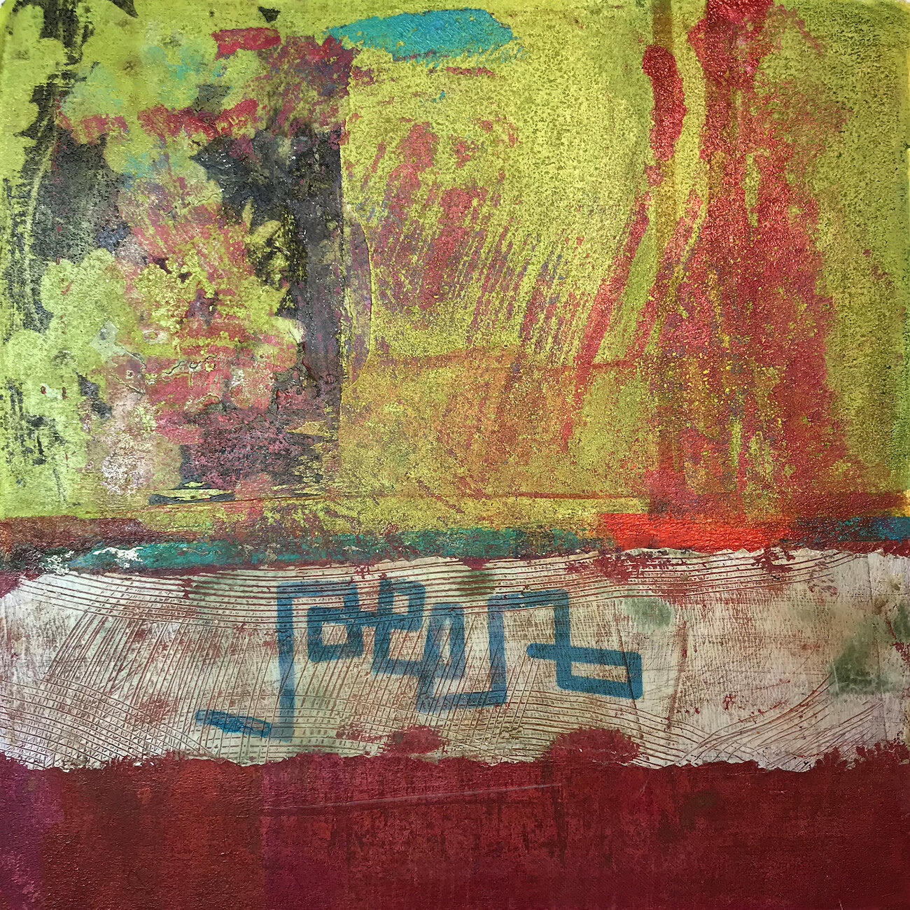 "Object Thoughts 5", monoprint collage, 10" x 10", $300 (framed)