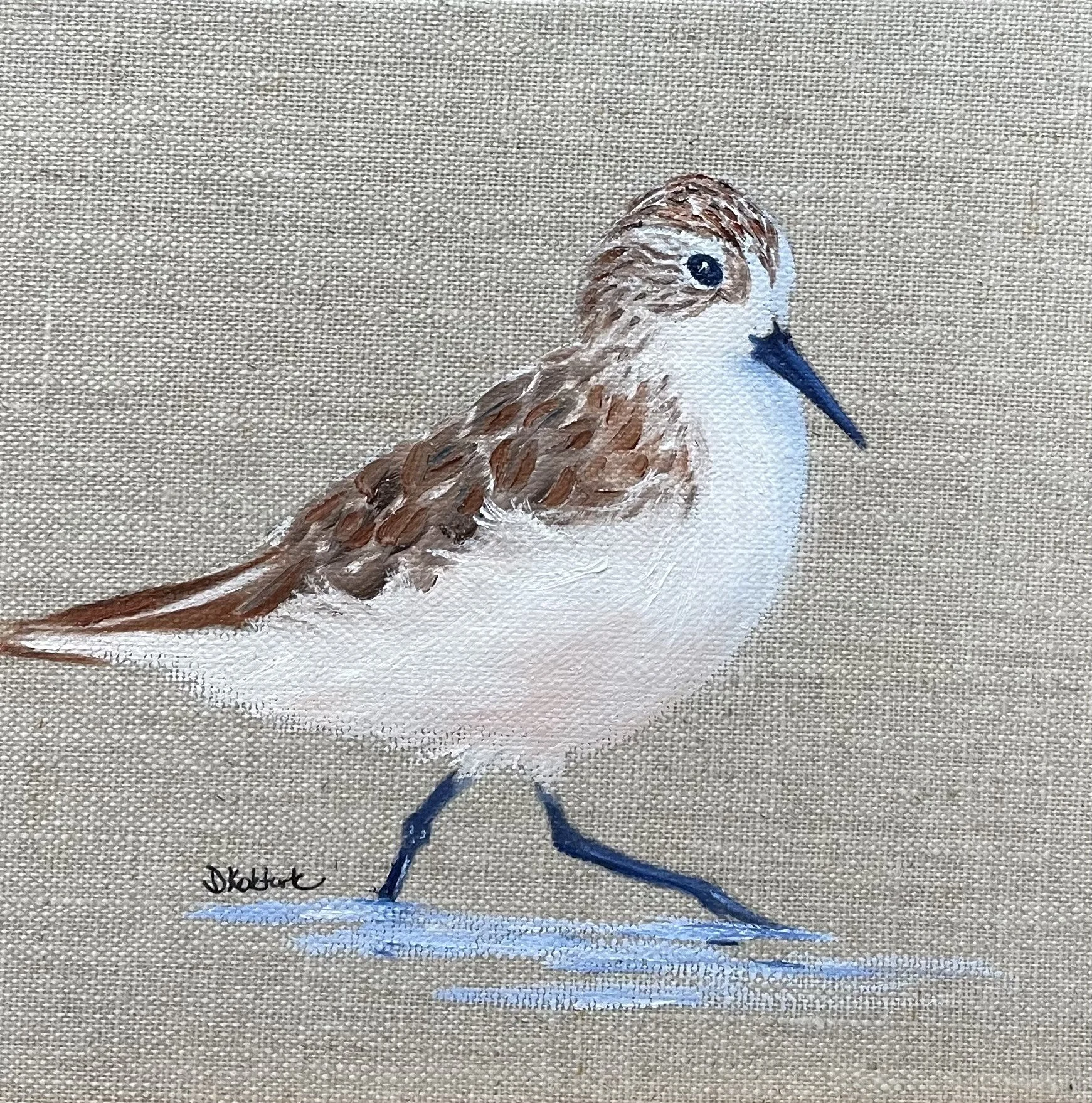 "Sandpiper 7", oil on linen, 6" x 6", $150 (framed)