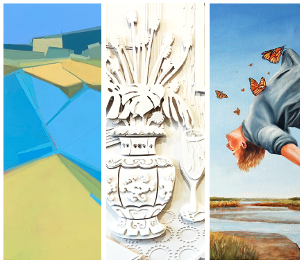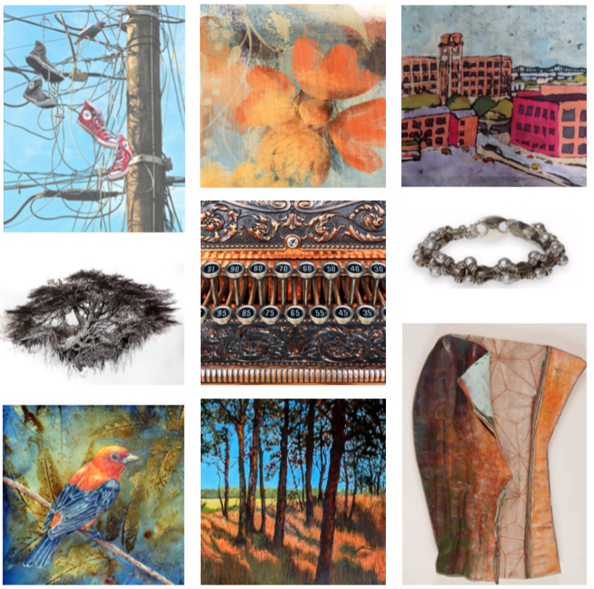 Work inspired by the life and times of the honeybee: landscapes, florals, encaustics (made with beeswax) and more.