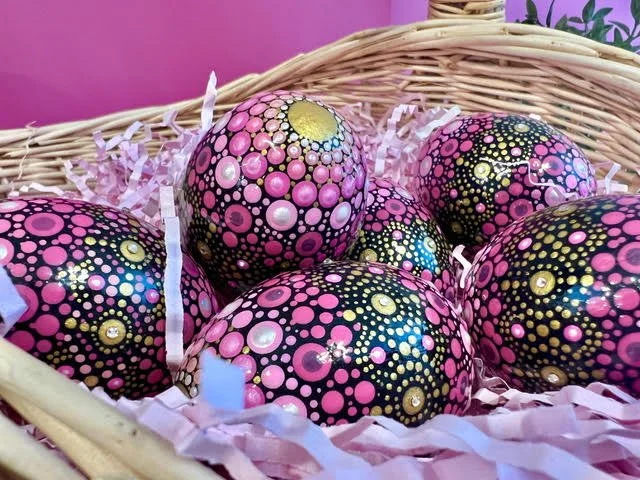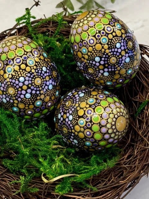 Hand blown and painted real eggs, $78 including gift box, shipping if needed, and personal message.