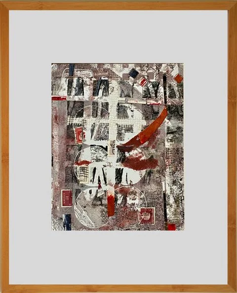 "Red Arc", collage, 14" x 11", $250 (framed)