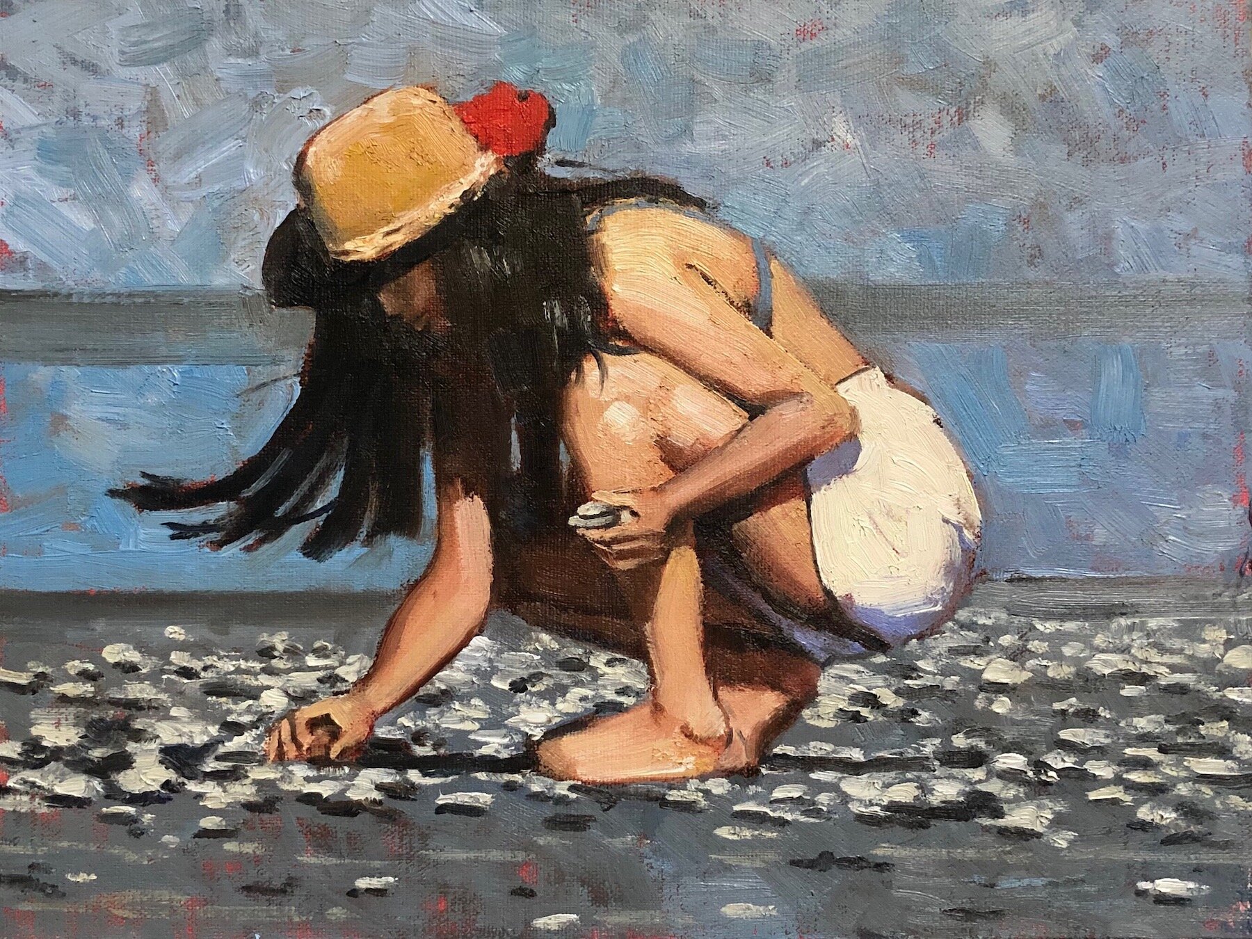 "Shell Collector" oil, 9" x 12", $325 (framed)