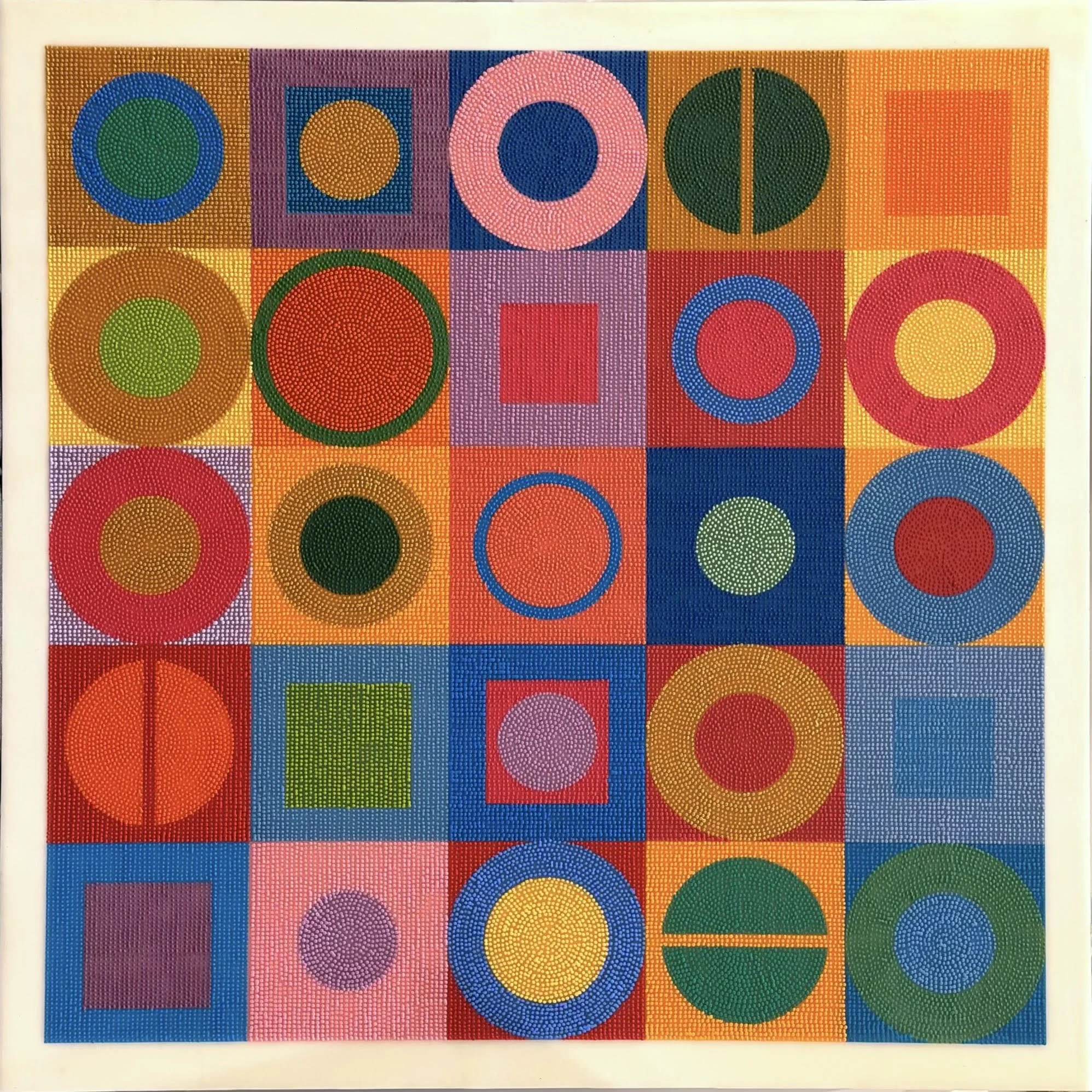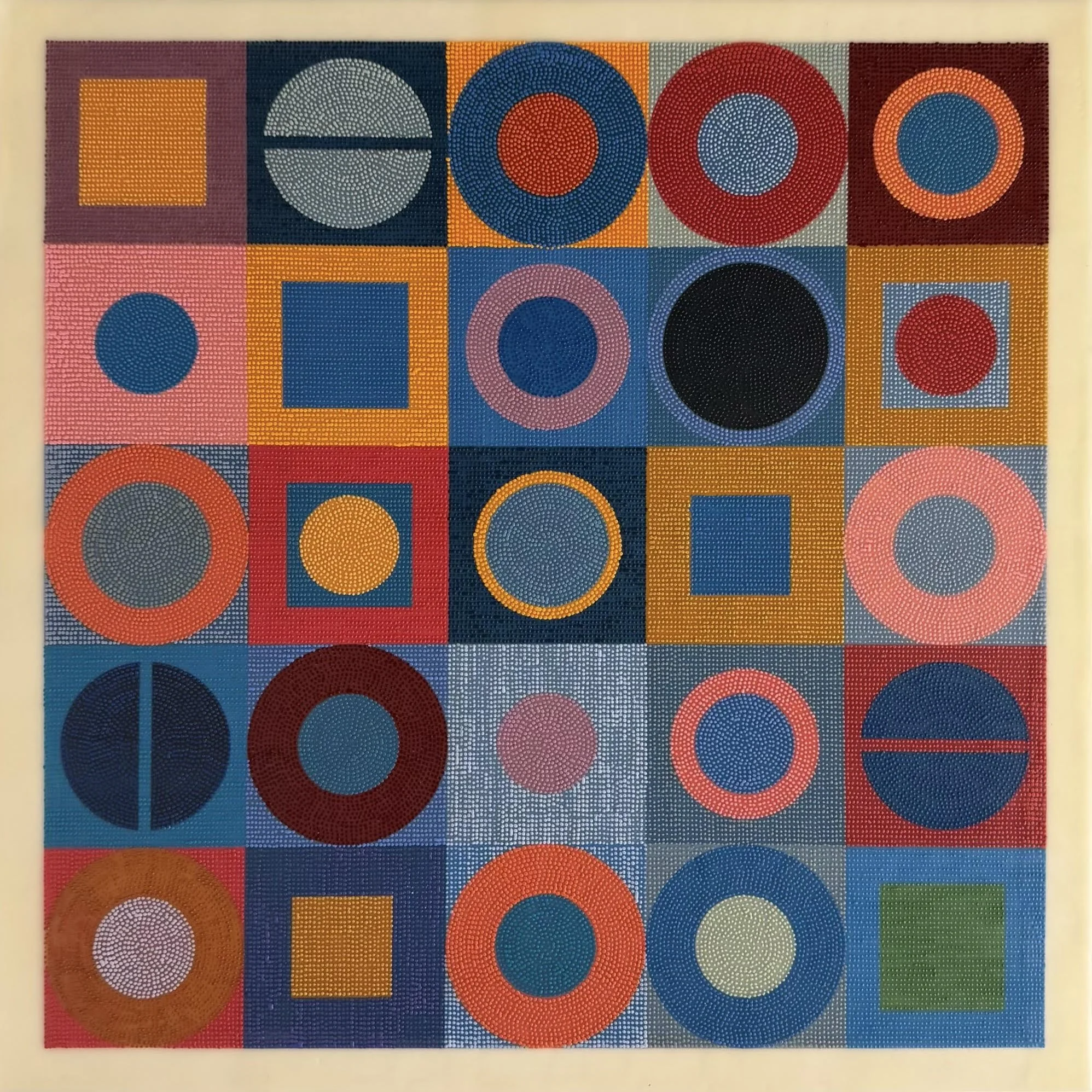 "Harmony In Circles & Squares : Radiant Grid", encaustic, 24" x 24", $1,850 (framed)