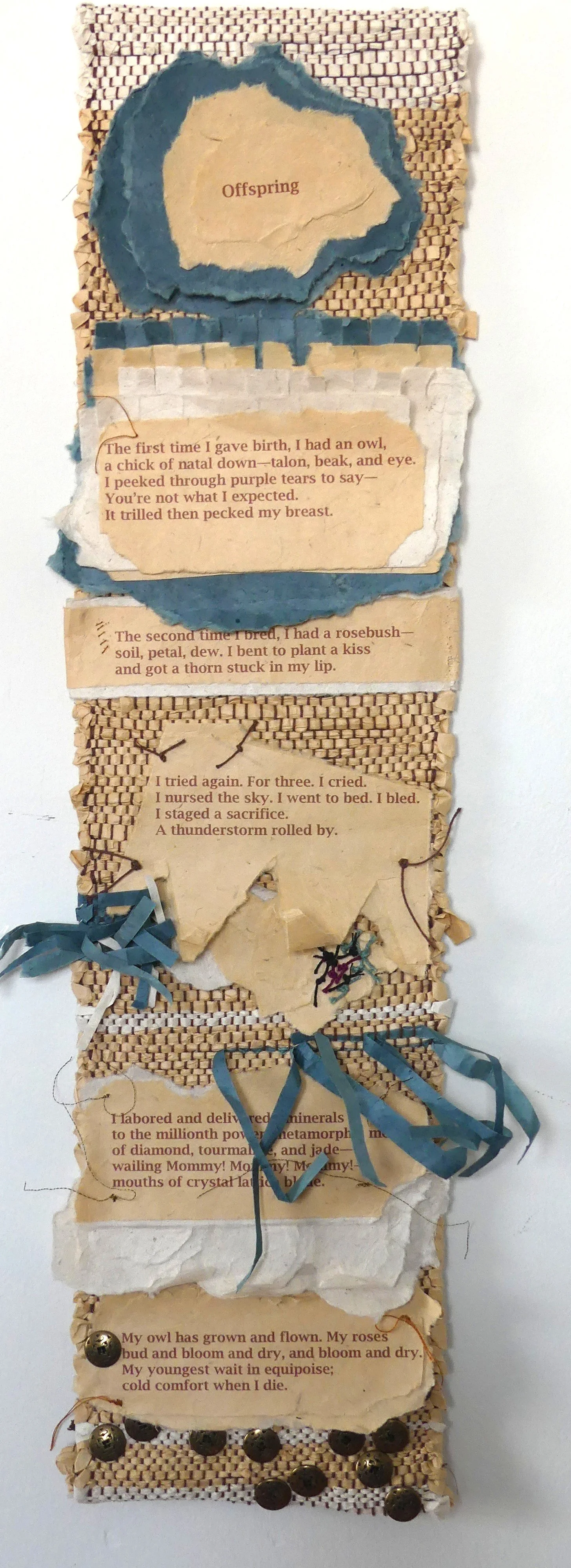 "Offspring", weaving, mixed media, 26" x 7", $400